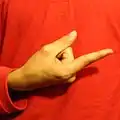 Thumb-IX-pinky, разогнуты большой, указательный палец и мизинец, остальные два согнуты.