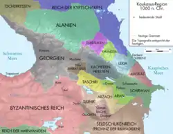 «Спас цховатский, я, Квенипновели эристав Ризия, пожертвовал цховатской Пречистой Богоматери имение двух дымов в Зенубане с его горами и равнинами. Попал в плен в Басиани и выкуплен твоими вещами. Пусть никакой владетель не изменит»16 (ил. 35). Этот популярный грузинский этноним известен за балкарцами и в более поздних документах. О земле басианов, рядом с дигорами, сванами и черкесами, писал и царевич Вахушти — ведущий историк и географ Грузии XVIII века. По его словам, «по западной стороне Дигории находится большое ущелье — Басиани, по которому протекает речка, истекающая из межгорья Рачинского и Басианского. Ущелье это простирается от Кавказа до Черкезисмта… Басиани граничат с севера горою Черкезскою, отделяющей Басиани от Черкесии, с востока горой Кавказом, лежащим между Басианом и Дигорией, с юга горою Кавказом, лежа щим между Сванетией и Басианом, с запада горою Кавказом, лежащим между Рачой и Басианом… Здешние овсы знатнее всех прочих овсов, и между ними попадаются помещики, имеющие закрепощенных крестьян»[21].