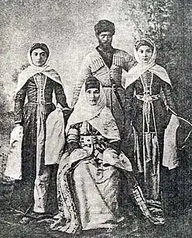 Балкарская семья. Исмаил Урусбиев с женой и дочерьми (XIX век)