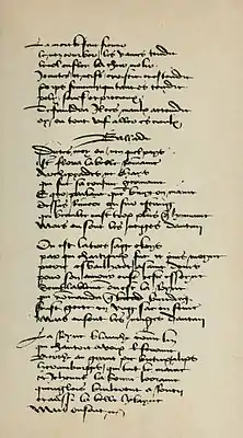Dictes moy ou, n’en quel pays, Ou est la tres sage Heloïs, La royne Blanche comme lis, Envoi Prince, n’enquerez de sepmaine |
