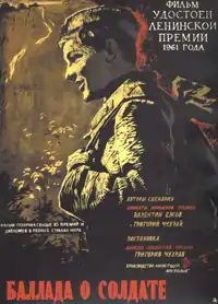 «Баллада о солдате» — советский художественный фильм 1959 года режиссёра Григория Чухрая. Повествует о нескольких днях из жизни солдата, который едет в отпуск к матери. В самом начале авторы сообщают, что Алексей Скворцов погибнет на войне. Фильм посмотрели более 30 млн советских зрителей, и в итоге он собрал более 100 зарубежных призов. Сценарист Валентин Ежов и режиссёр Григорий Чухрай были удостоены Ленинской премии[1].