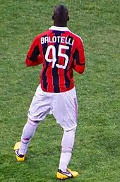 30 января 2013 официально перешёл в «Милан»[35]. Сумма трансфера составила € 20 млн[36]. 1 февраля 2013 года Марио Балотелли был представлен в качестве игрока «россонери», получив футболку с номером 45.