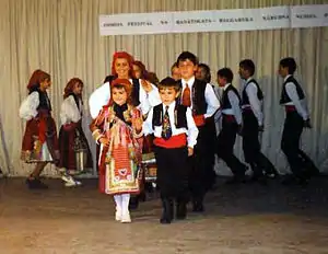 Музыка банатских болгар классифицируется как отдельная отрасль болгарской народной музыки, с несколькими словесными и музыкальными особенностями. На их музыку оказало румынское, сербское, венгерское и влияние, а болгарские колядки были заменены на городского типа песни. Римский католицизм оказал значительное влияние, исключая определённые типы песен и требуя заменить их другими.[2] Кроме того, банатские болгары сохранили многие болгарские праздники, но также приняли некоторые другие от соседних народов.[3] Один из самых популярных праздников называется Faršángji (от венг. Farsang «Мясопуст»), или карнавал.[4] Банатские болгары также в значительной степени заимствовали танцы соседних народов, например, венгерский чардаш[2].