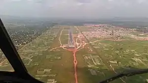 В 2013 году, спасаясь от захватчиков из группировки Селека, мирные жители искали защиту в аэропорту.[1] Так, на время гражданской войны аэропорт стал неофициальным лагерем беженцев для приблизительно 100 000 человек. Лагерь существовал больше трёх лет и прекратил существование в декабре 2016 года. За это время в нём родилось 5 600 детей.[2][3]