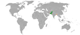 Бангладешско-пакистанские отношения — двусторонние дипломатические отношения между Бангладеш и Пакистаном. Бангладеш был частью Пакистана с 1947 по 1971 год, затем получил независимость после кровопролитной народно-освободительной войны. В рамках Шимлского соглашения, Индия предпринимала меры, чтобы Пакистан признал независимость Бангладеш. Пакистан обратился к КНР с просьбой заблокировать вступление Бангладеш в Организацию Объединённых Наций до 1974 года. Индия, тем временем, прикладывала усилия, чтобы помочь добиться международного признания Бангладеш. К концу марта 1973 года 98 стран признали Бангладеш[1]. В 1974 году Пакистан признал Бангладеш после того, как стало оказываться давление со стороны других мусульманских стран, особенно арабских государств. Муджибур Рахман заявил, что он будет присутствовать на конференции ОИК в Лахоре, только если Пакистан признает Бангладеш[2]. Пакистан установил полные дипломатические отношения с Бангладеш 18 января 1976 года.