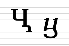 Ранее использовалась в абхазском (1937—1954)[5] и осетинском (1938—1954)[6] алфавитах на основе грузинского письма, после их перевода на кириллицу в обоих случаях была заменена на б.