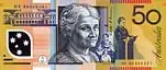 $50 | 151×65 | В центре — портрет Дэвида Юнайпона, схема прибора для стрижки овец, запатентованного Юнайпоном, введение, написанное рукой Юнайпона, к своему рассказу «Легендарные истории австралийских аборигенов»; слева — миссионерская церковь и семейная пара австралийских аборигенов; справа — виньетка с изображением созвездия Южного Креста. | В центре — портрет Эдит Коуэн, изображение матери и приёмных детей; слева — здание парламента Западной Австралии (Коуэн была депутатом этого парламента); справа — изображение Коуэн за кафедрой, читающей свою речь, посвящённую правам женщин и благополучию детей. | Южный Крест и 50 | 4 октября 1995 | 2018 |