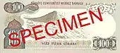 100 | 131×63 | Фиолетовый, коричневый | Цитадель Анкары, портрет Мехмета Акифа Эрсоя и изображение его дома в Анкаре, первые два катрена поэмы «Истиклаль» | 26 декабря 1983 | 21 августа 1989 | ||||||
