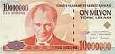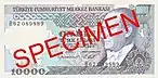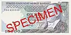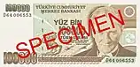 10 000 | Фиолетовый, зелёный | Зелёный | Портрет Мимара Синана и мечеть Селимийе | 25 октября 1982 | 15 декабря 1995 | ||||||