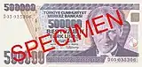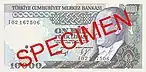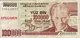 100 000 | 158×76 | Коричневый, зелёный | Портрет Мустафы Кемаля Ататюрка и его статуя в Самсуне | Студенты, дарящие цветы Ататюрку | 11 ноября 1991 | 5 ноября 2001 | |||||