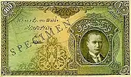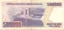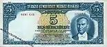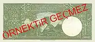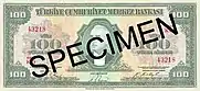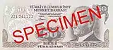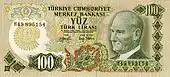 125×55 | Жёлтый, светло-зелёный | Зелёный, коричневый | Портрет Исмета Инёню | Бывшее здание главного офиса Центрального банка Турции | 26 июня 1944 | 1 августа 1947 | ||||