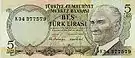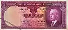 2,5 | 145×65 | Красновато-фиолетовый | Красновато-фиолетовый | Портрет Мустафы Кемаля Ататюрка | Бывшее здание главного офиса Центрального банка Турции | 15 июля 1952 | 20 октября 1966 | ||||