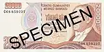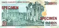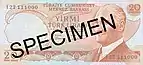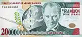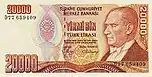 20 000 | 152×76 | Бордовый | Фиолетовый | Современное главное здание Центрального банка Турции | 9 мая 1988 | 9 сентября 1997 | |||||