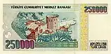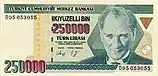 250 000 | Синий | Портрет Мустафы Кемаля Ататюрка | Кизил-Куле | 2 октября 1992 | 31 декабря 2004 | ||||||