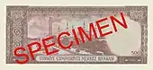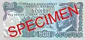 500 | 170×80 | Коричневый | Мавзолей султана Ахмеда, Обеликс и стамбульский Ипподром | 15 апреля 1953 | 1 сентября 1976 | ||||||