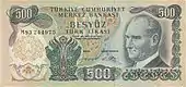 500 | 170×80 | Оливковый, синий | Главный вход Стамбульского университета | 1 сентября 1971 | 15 июня 1984 | ||||||