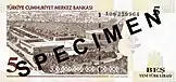 - Türkiye Cumhuriyet Merkez Bankasi (Central Bank of the Republic of Turkey). Announcement on the Withdrawal of Turkish Lira Banknotes from Circulation (недоступная ссылка). Official Gazette no. 26028, 19 December 2005, pages 89-90.. TCMB (19 декабря 2005). Дата обращения: 5 января 2008. Архивировано 15 июня 2009 года.