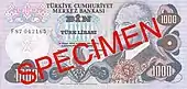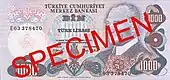 1 000 | Фиолетовый | Портрет Мехмеда II со старым изображением горизонта Стамбула | 31 марта 1986 | 3 августа 1992 | |||||||