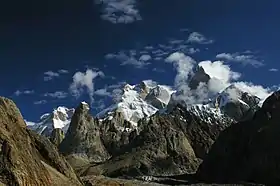 Вид на Огре и Южный палец с ледника Биафо | |