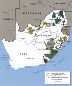 Бантуста́н (африк. Bantoestan) — территория, использовавшаяся в качестве резерваций для коренного чёрного населения Южной Африки и Юго-Западной Африки (ныне Намибия) в рамках политики апартеида. Десять бантустанов находились в ЮАР и десять — в находившейся под её управлением ЮЗА. Целью их создания было сосредоточить на ограниченной территории представителей одной народности, что делало бантустаны этнически гомогенными.
