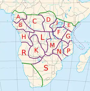 - Зона K. Языки юго-востока Анголы, северо-запада Замбии, Ботсваны. Около 27 языков. Языки: чокве (920 тыс. чел.: Конго-Заир — 62 %, Ангола — 38 %), луэна (720 тыс.: Замбия — 44,4 %, Ангола — 41,7 %, Конго-Заир — 13,9 %), лучази (220 тыс.: Ангола — 91 %, Замбия — 9 %), мбуэла, или вамбуэла (35 тыс.: Замбия 57 %, Ангола — 42,9 %), субиа (25 тыс.: Намибия — 40 %, Замбия — 40 %, Ботсвана — 20 %), пенде, холу, руунд, квангали, дируку. Всего 4,6 млн человек.