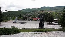 Центр села Баня с памятником борцам за национальную независимость и домом культуры «Пробуда»