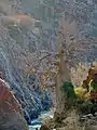 Зимой, в засушливый период, дерево начинает расходовать запасы влаги — уменьшается в объёме и сбрасывает листву. С октября по декабрь баобаб зацветает. Цветки у баобаба крупные (до 20 см в поперечнике[2]), белые с пятью лепестками и пурпурными тычинками, на висячих цветоножках. Раскрываются они ближе к вечеру и живут всего одну ночь, привлекая ароматом опыляющих их крыланов. Утром цветки вянут, приобретая неприятный гнилостный запах, и опадают.