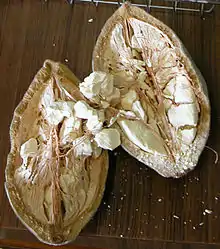 Семя плода съедобно в сыром виде, а из зажаренного и измельчённого варят заменитель кофе.