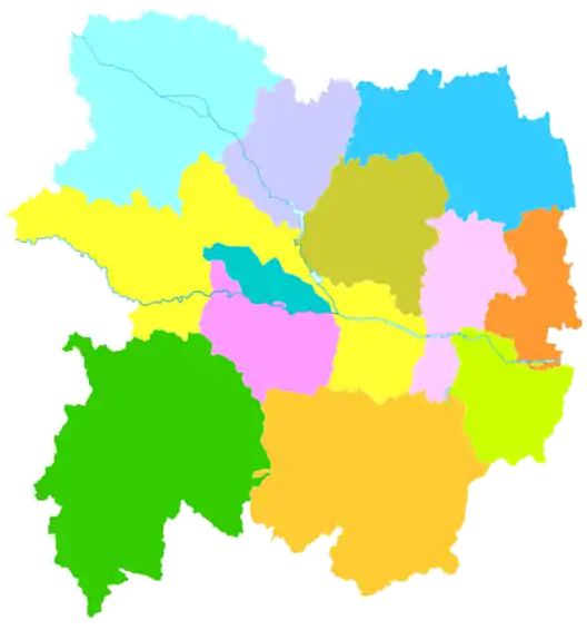 | Уезд | Цишань | 岐山县 | Qíshān xiàn | 855 | 470 000 | |