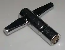 - Ключ для барабанов — четырёхгранный ключ для настройки пластиков, регулировки пружин и цепей педалей.