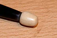 Деревянные головки дают тёплое мягкое звучание дерева. Основным их минусом является изнашиваемость (стачиваемость).