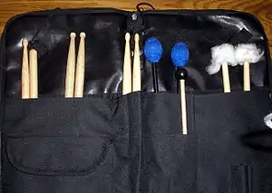 Для игры на литаврах, том-томах используются специальные палочки с увеличенными головками. Для ксилофонов, вибрафонов используют подобные палочки, иногда для исполнения аккордов могут применяться и по 4 палочки.