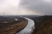 Вид на Раздольную реку с западной части кратера