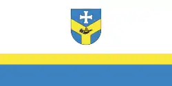 Флаг: Прямоугольное полотнище с соотношением сторон 1:2, в нижней части которого расположены две полосы: голубая, над ней жёлтая, составляющие соответственно ¼ и 1/8 ширины полотнища, в центре верхней части находится изображение герба города Барань.