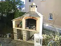 Печь барбекю может представлять собой сложную конструкцию, включающую очаг с грилем и вертелом (как правило, оснащённым электроприводом), варочную печь, духовку, коптильню, тандыр и т. п. Кроме того, конструкция барбекю должна предусматривать свободные поверхности — полочки — для размещения собственно приготавливаемых продуктов и соответствующей кухонной утвари, которая потребуется в процессе приготовления пищи. Необходимо предусмотреть также наличие разделочного стола и встроенной мойки.