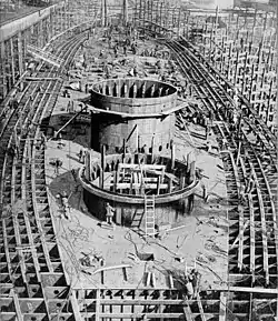 Барбет на англоязычной схеме орудий главного калибра, линкора «Айова», с орудиями 406 миллиметров.