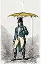 Зонт, оснащенный громоотводом, разработанным Жаком Барбё-Дюбуром. Гравюра 18 века.