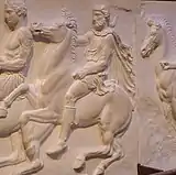 Афинские всадники. Деталь фриза Парфенона. 438—432 гг. до н. э. Мрамор. Британский музей, Лондон