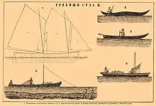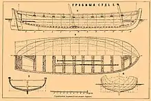 - Гребные суда // Военная энциклопедия : [в 18 т.] / под ред. В. Ф. Новицкого … [и др.]. — СПб. ; [М.] : Тип. т-ва И. Д. Сытина, 1911—1915.