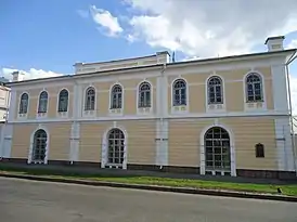 Здание реконструировал архитектор Я. Н. Попов. в 1830-1840 годах, присоединив к нему глухую каменную ограду с портиками, сохранившимися до сегодняшнего времени, и гауптвахту (здание не сохранилось).