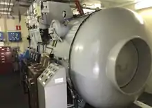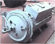 Барока́мера (др.-греч. baros — тяжесть, давление[1]) — сосуд (камера) или помещение, выполненное обычно из металла. Имеет возможность герметизации и создания внутри камеры давления большего (гипербарические барокамеры) или меньшего (гипобарические барокамеры), чем атмосферное.