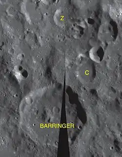 Кратер Барринджер (лат. Barringer), не путать с кратером Бэрринджера на Земле,— древний ударный кратер в южном полушарии обратной стороны Луны. Название дано в честь американского геолога Дэниеля Моро Барринджера (1860—1929) и утверждено Международным астрономическим союзом в 1970 г. Образование кратера относится к нектарскому периоду[1].