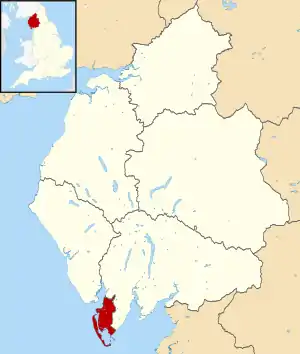 Район расположен на южной оконечности полуострова Фернесс и острове Уолни в Ирландском море в южной части графства Камбрия.