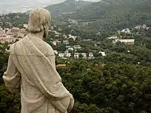 Барселона лежит на холмах, давших название городским кварталам: Кармель (кат. Carmel, 267 м), Монтерольс (кат. Monterols, 121 м), Пучет (кат. Putxet, 181 м), Ровира (кат. Rovira, 261 м) и Пейра (кат. Peira, 133 м). С горы Монжуик высотой 173 м в юго-западной части города открывается великолепный вид на порт Барселоны. На Монжуике расположена крепость XVII—XVIII веков, взявшая на себя оборонные функции разрушенной цитадели Сьютаделья (кат. Ciutadella), в то время как на месте последней разбили парк. В настоящее время в крепости размещается Военный музей. Помимо крепости на Монжуике находятся олимпийские объекты, учреждения культуры и знаменитые сады.