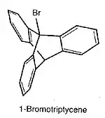 Эти два галогенида также оказались ещё более инертными; реакция с нитратом серебра протекает по меньшей мере в 1015 раз быстрее с т-бутилбромидом, чем с 1-йодтриптиценом. Трифенилметиловый катион достаточно стабилен, тогда как соответствующий катион из триптицена образоваться не мог.