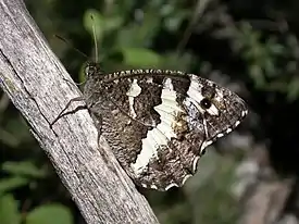 Крупная бабочка с размахом крыльев в среднем 65—80 миллиметров. Окраска главным образом чёрная или тёмно-коричневая с широкой вертикальной белой полосой, располагающейся у краёв всех крыльев, и второй белой полосой на нижних крыльях.