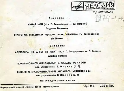 | Лейблы | Мелодия |
