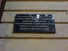 - На фасаде львовского дома № 34 по улице Вишенского, где польская полиция арестовала О. Басараб-Левицкую с подругой, установлена памятная табличка.