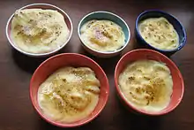- Goxua (гошуа) — сладкий десерт из пудинга, теста, сливок и карамели