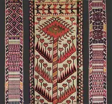 Тесьма с ярким орнаментом на белом фоне служила украшением для парадной юрты. Казахский обычай пышной свадьбы также требовал богатых украшений в интерьере. Их считали залогом счастливой жизни молодожёнов. Узорная лента ассоциировалась с устройством космоса и человеческого тела[3].